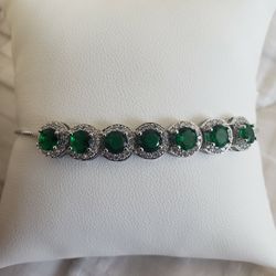 Silver Ajustable Bracelet With Green And Silver Stone...absolutely Gorgeous $18Cocoa, FL