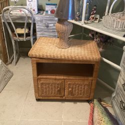 WHITE WICKER TABLE WITH SHELF UNDERNEATH/ (18 1/2 " HIGH & 20" ACROSS) OPEN TO REASONABLE OFFERS $45Merritt Island, FL