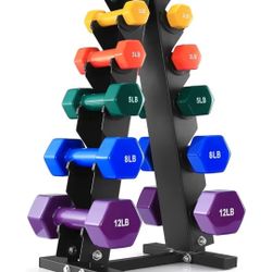 4 Metal Dumbbells, Stand, Two Rubber Coated Dumbbells $130Rockledge, FL