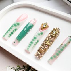 Handmade gold and pink-green two-tone press-on nails with rhinestones$19Homestead, FL