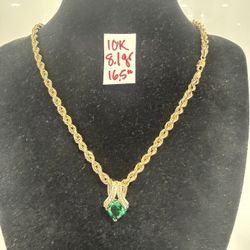 10K Yellow Gold Chain and Pendant With Diamonds 💎 Stones For Wedding 8.1Gr 16.5 Inches Long $950Hialeah, FL