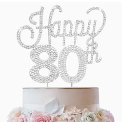LINGTEER Happy 80th Birthday Silver Rhinestone Cake Topper - Cheers to 80th Birthday Eighty Years Old Anniversary Party Cake Centerpieces Topper Decor$6Miramar, FL
