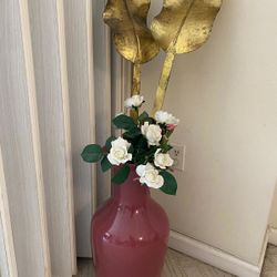 Elegant Pink Vase with Gold Leaves and Floral Arrangement$30Hollywood, FL