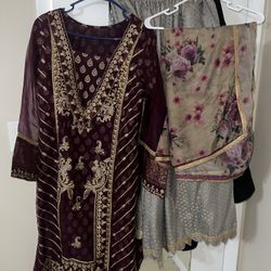 Dark purple Asim Jofa floral 3 piece gharara/farshi shalwar formal wedding Pakistani Desi suit$50Pembroke Pines, FL