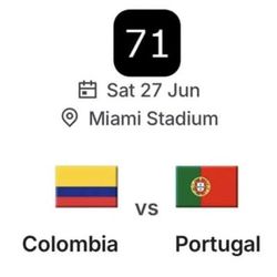 1 ticket category 2 Colombia vs Portugal - World Cup 2026$2,450Miami, FL