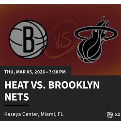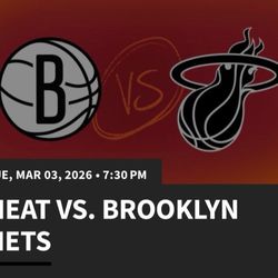 Miami Heat vs Brooklyn Nets Tickets for 03/03/26 @ 7:30pm$140Biscayne Park, FL