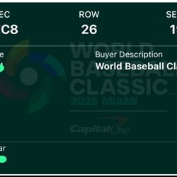 4 Tickets World Classic Baseball Dominican Game$450Miami, FL