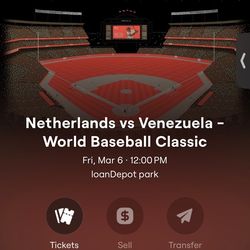 2 Tickets Netherlands vs. Dominican Republic - Game 5 Sun, Mar 8 • 12:00 PM ET$125Pembroke Pines, FL