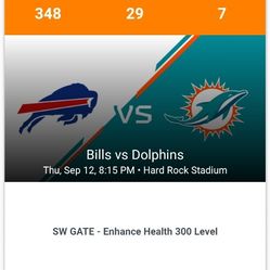 Miami Dolphins VS Buffalo Bills TNF$550Miami, FL