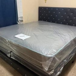KING SIZE Diamond BED Frame With Mattress And Box Spring Set 3PCS // NEW Bed Frame Box sealed Black BED Diamonds $450Miami, FL