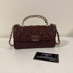 Burgundy Quilted Mini Bag With Gold Hardware $400Miami, FL