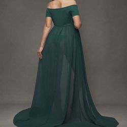 Brand New Mother of The Bride Long Dress, Size 4, Satin, Olive Green Color, 3/4 Long Sleeve, V Neck with Pockets