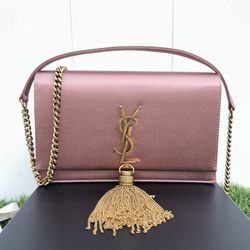 SAINT LAURENT KATE TASSEL CLUTCH ON CHAIN ROSE PINK SATIN GOLD HARDWARE NEW! $1,100Pembroke Pines, FL