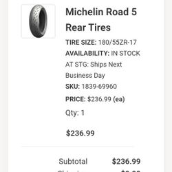 Motorcycle Michelin Road 5 Tire, 180/55 ZR 17, Brand New, DOT 27/25$150Miami Beach, FL