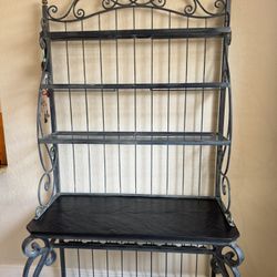 French-style wrought iron baker's rack featuring scrolled decorative elements and a black top shelf$25Fort Lauderdale, FL