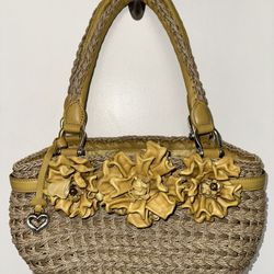 Brighton Straw Yellow Leather Flower Handbag Top Handle Bag Boho Shabby Chic$45Miami, FL