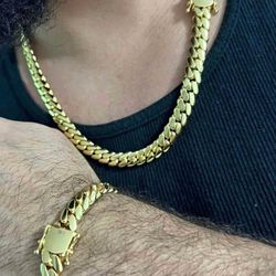 New 18k Yellow Gold Filled Cuban Link Chain and Bracelet Set $140Fort Lauderdale, FL
