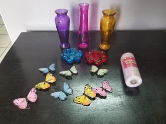 Decoraciones para fiesta, 3 floreros de vidrio, 8 mariposa 2 portavelas y decor filet$42Fort Lauderdale, FL