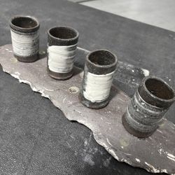 Rustic Ceramic Candle Holders Set Of 4 With Tray Unique Glaze Designs Im not completely sure on the material it could be stone also not what it’s ac$45Miami, FL