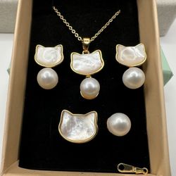 Cute cats set of 3 (pendant, earrings and rings). mother of pearl and white real freshwater pearl$39Aventura, FL