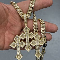 iced out AAA+ simulated lab diamonds crosses pendant and Cuban necklace$140Fort Lauderdale, FL