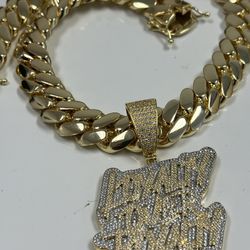 14k premium gold plated Cuban necklace and icy pendant š„š„š„$499Fort Lauderdale, FL