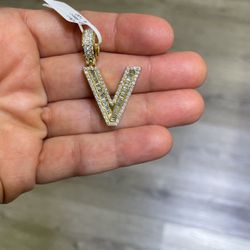 14k Yellow Gold Charm Letter V With Around And Baguette Diamond$1,500Miami, FL