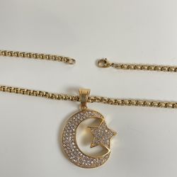 Gold Moon and Star Charm with 14K Gold Plated Box Necklace 4mm 24" Chain Set$45Oakland Park, FL