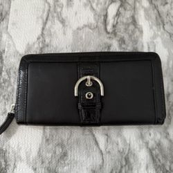COACH BLACK/SILVER LEATHER BUCKLED ZIP AROUND WALLET$35Homestead, FL