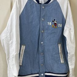 Disney Mickey Mouse 1928 League Denim Varsity Jacket Adult size M $79Pembroke Pines, FL