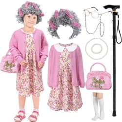 Old Lady Costume 100 Days of School Costumes Granny Wig Glasses Necklace Grandma Dress Up Accessories(Pink, L) $15Medley, FL