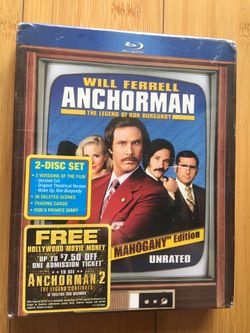 ANCHORMAN UNRATED BLU RAY : THE RICH MAHOGANY EDITION WILL FERRELL TWO DISC SET Brand New In Manufacturers Shrink Wrap $17.00$16Fort Lauderdale, FL