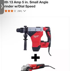 Milwaukee 15 Amp SDS-Max Combination Hammer Plus Small Angle Grinder W/dial Speed$465Medley, FL