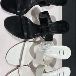 New Dior Logo Open Toe Sandals Heels Mules Slip On Black & White patent leather (2 pairs)$800Miami, FL
