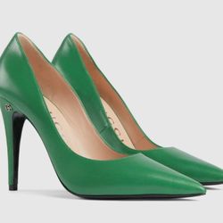 NEW Gucci Nappa Charlotte shamrock leather sling back heels