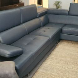 SECTIONAL 100% LEATHER RECLINER ELECTRIC BLACK COLOR.. β