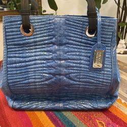 Badgley Mischka blue crocodile embossed vegan leather tote with side snaps. $30Miami, FL