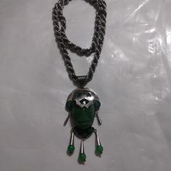 Sterling Silver Chain And Silver And Jade Pendant Chain Lent 24 Inches Long Pendant 3 3/4 By 1 1/2 Used $965Fort Lauderdale, FL