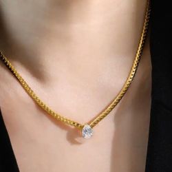 Gold Choker Necklace with Sparkling Gemstone Pendant Stainless Steel$18Miami, FL