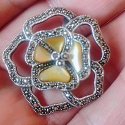 Sterling Silver Marcasite and Mother of Pearl Pendant Diamond Chips $30Hialeah, FL