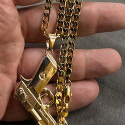 14k gold bonded with stainless steel hand gun pendant and rope necklace best quality ✅💯✅$49Fort Lauderdale, FL