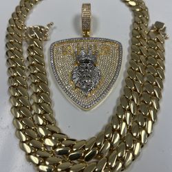 iced out AAA+ simulated lab diamonds Lion pendant and Cuban necklace🔥🔥🔥$450Fort Lauderdale, FL