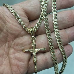 14k premium gold plated crucifix Pendant and Cuban Link necklace🙏$39Fort Lauderdale, FL