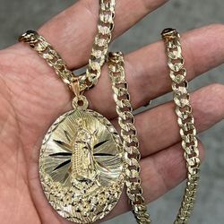 14k premium gold plated virgin mary pendant and necklace ✅✅$39Fort Lauderdale, FL