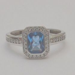 18K White Gold Ring Emerald Cut Blue Stone Halo with Accent Stones$367Miami, FL