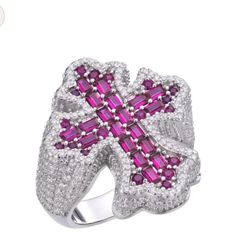 Sterling Silver Round Moissanite With Red CZ Mens Cross Religious SZ 10 Ring RP 2-5/8 Cttw$375Fort Lauderdale, FL