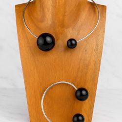 Modern Black Orb Statement Necklace & Bracelet Set β Silver Minimalist Chic$35Miami, FL
