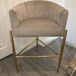 Iconic Home Cyrene Counter Stool Chair Velvet Upholstered Shelter Arm Shell Design 3 Legged Gold Tone Solid Metal Base Modern Contemporary, TAUPE$50Quail Heights, FL
