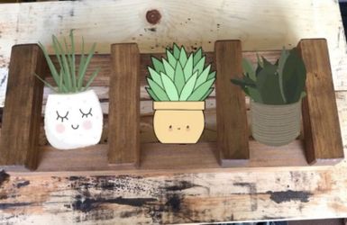 Succulent plants with little wood stand beautiful plants!$8Miami, FL