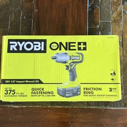 Ryobi 18V ONE+ 1/2” Impact Wrench Kit – NEW – 4.0Ah Battery$130Miami, FL